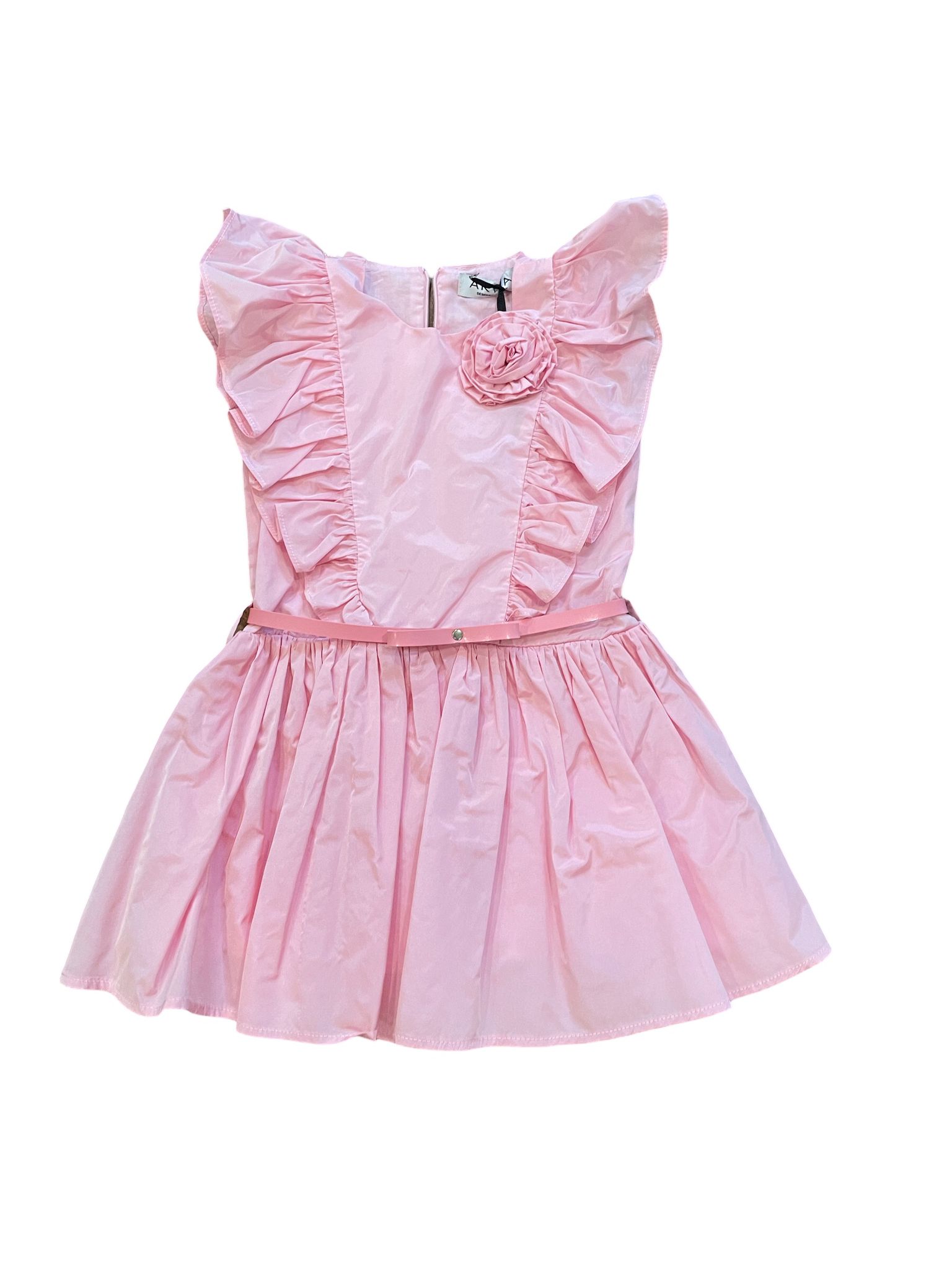 Vestito in cotone con rouches e cinturina in vita.