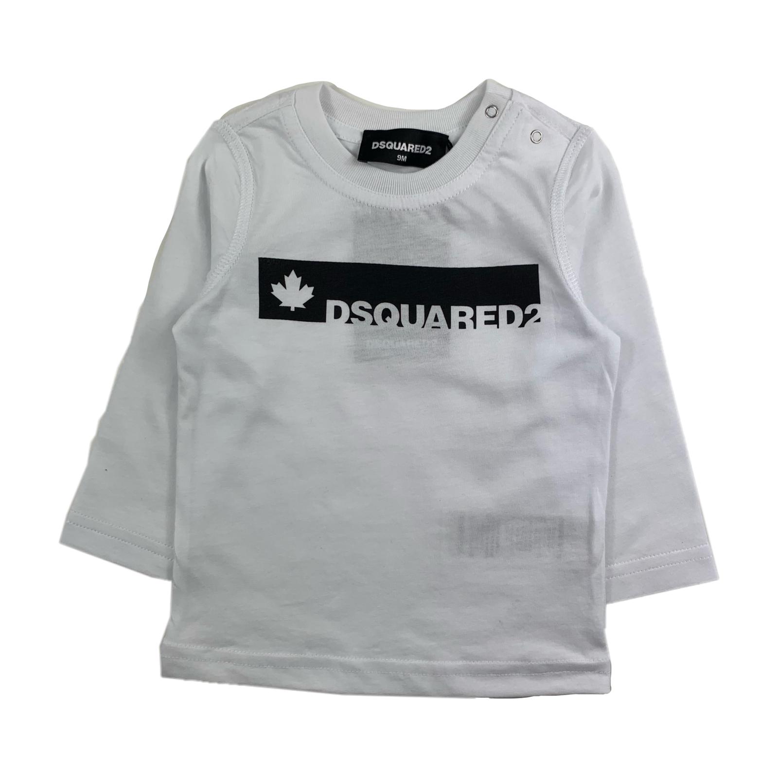 Maglia con maniche lunghe bianca con bottoncini laterali; logo centrale nero.