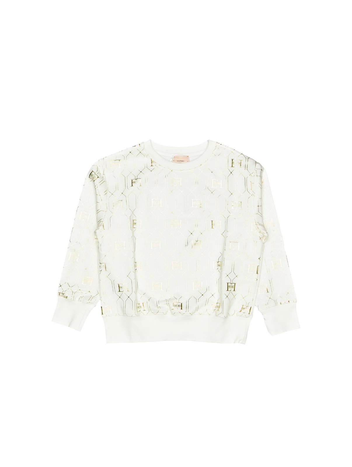 Felpa panna girocollo, garzata, con stampe loro oro.