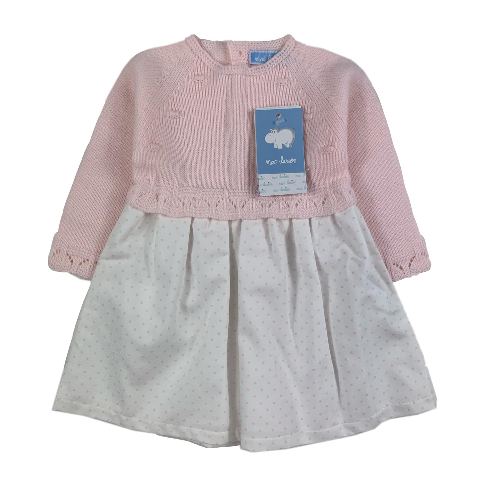 Abito panna e rosa con parte superiore in lana e quella inferiore in caldo cotone.