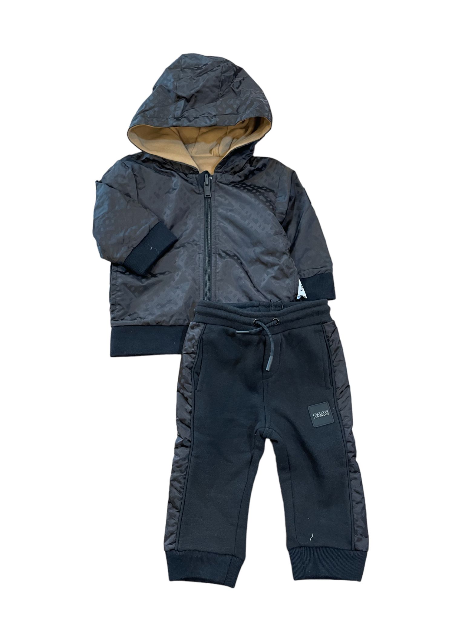 Felpa con zip e cappuccio con taschine e pantalone tuta abbinato.