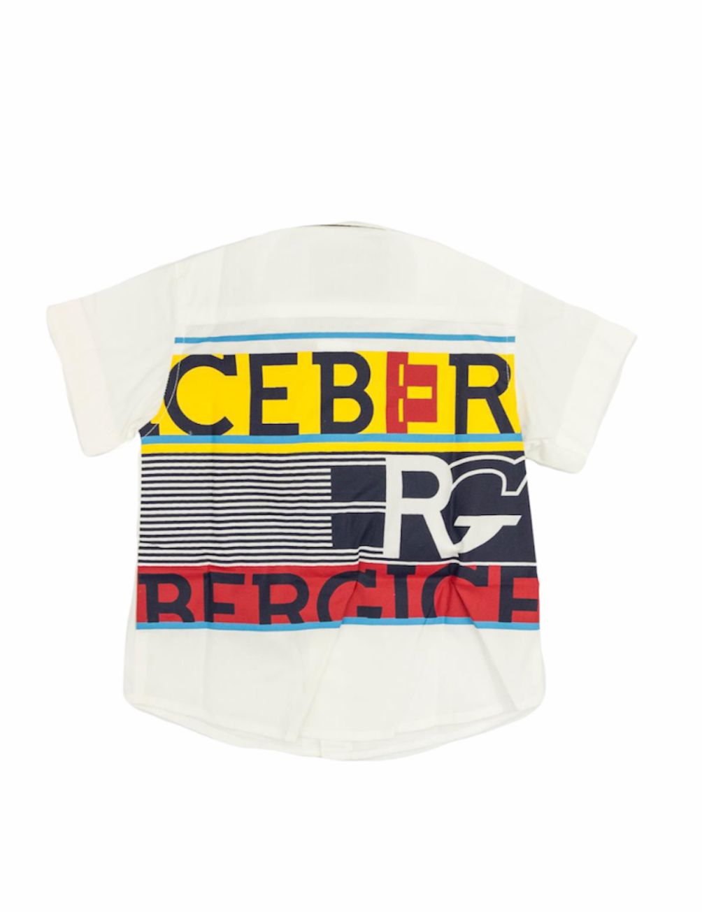 Camicia bianca a maniche corte con logo colorato sul retro.