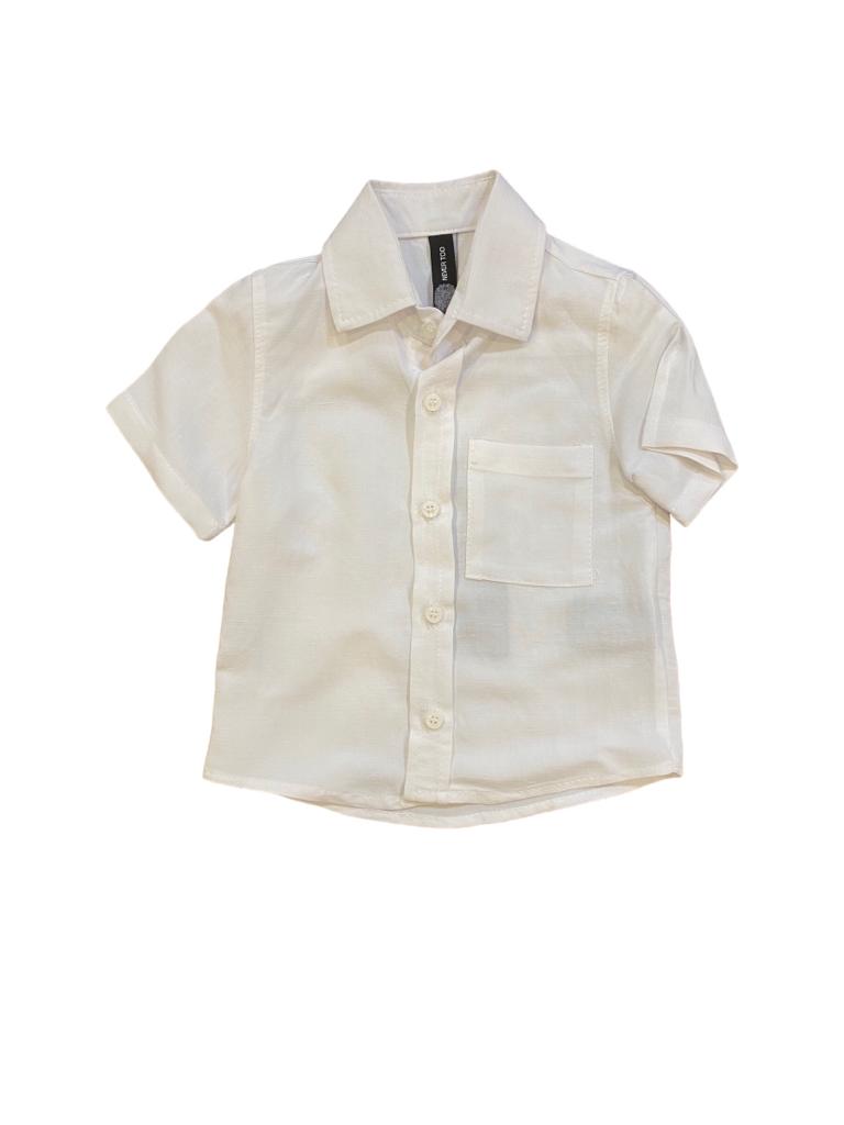 Camicia a mezza manica di lino bianca con colletto regolare.