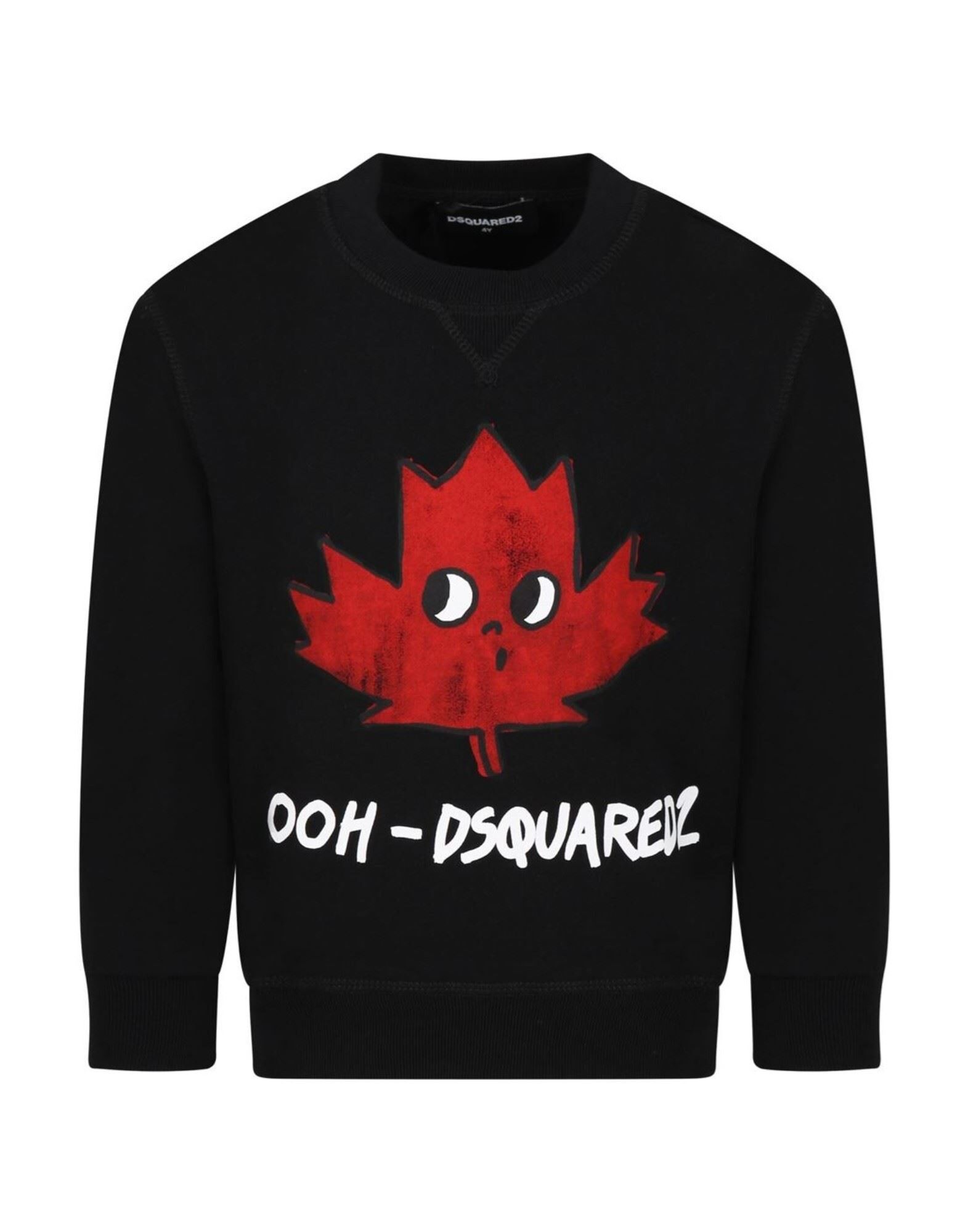 Felpa in cotone garzato nera con logo stampato rosso e bianco.