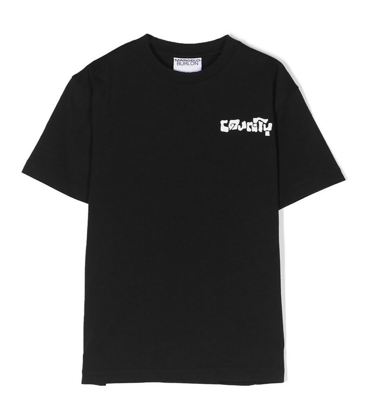T-shirt nera in cotone con stampa multicolor sul retro.