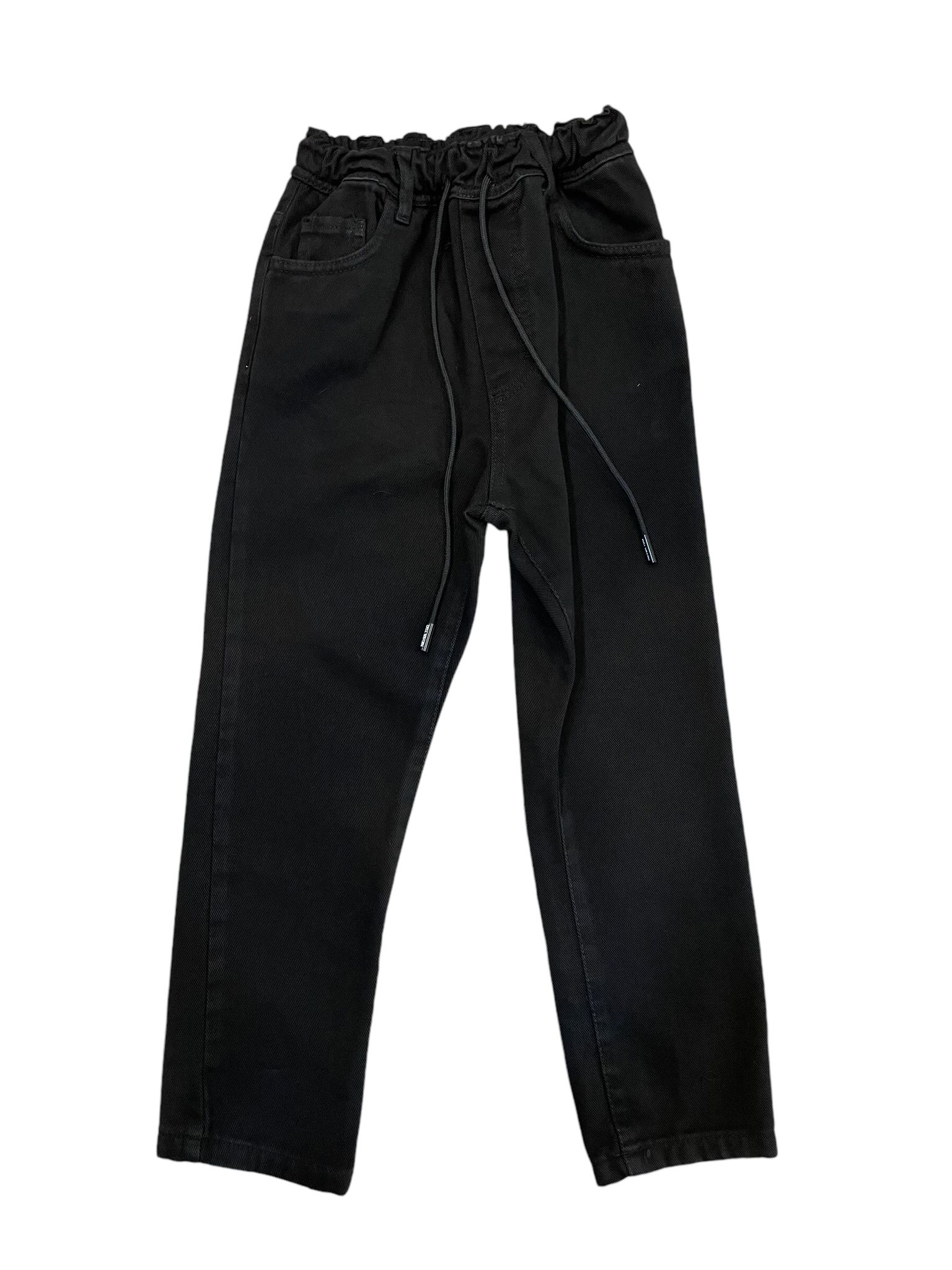 Pantalone nero con tasche regolari ed elastico in vita.